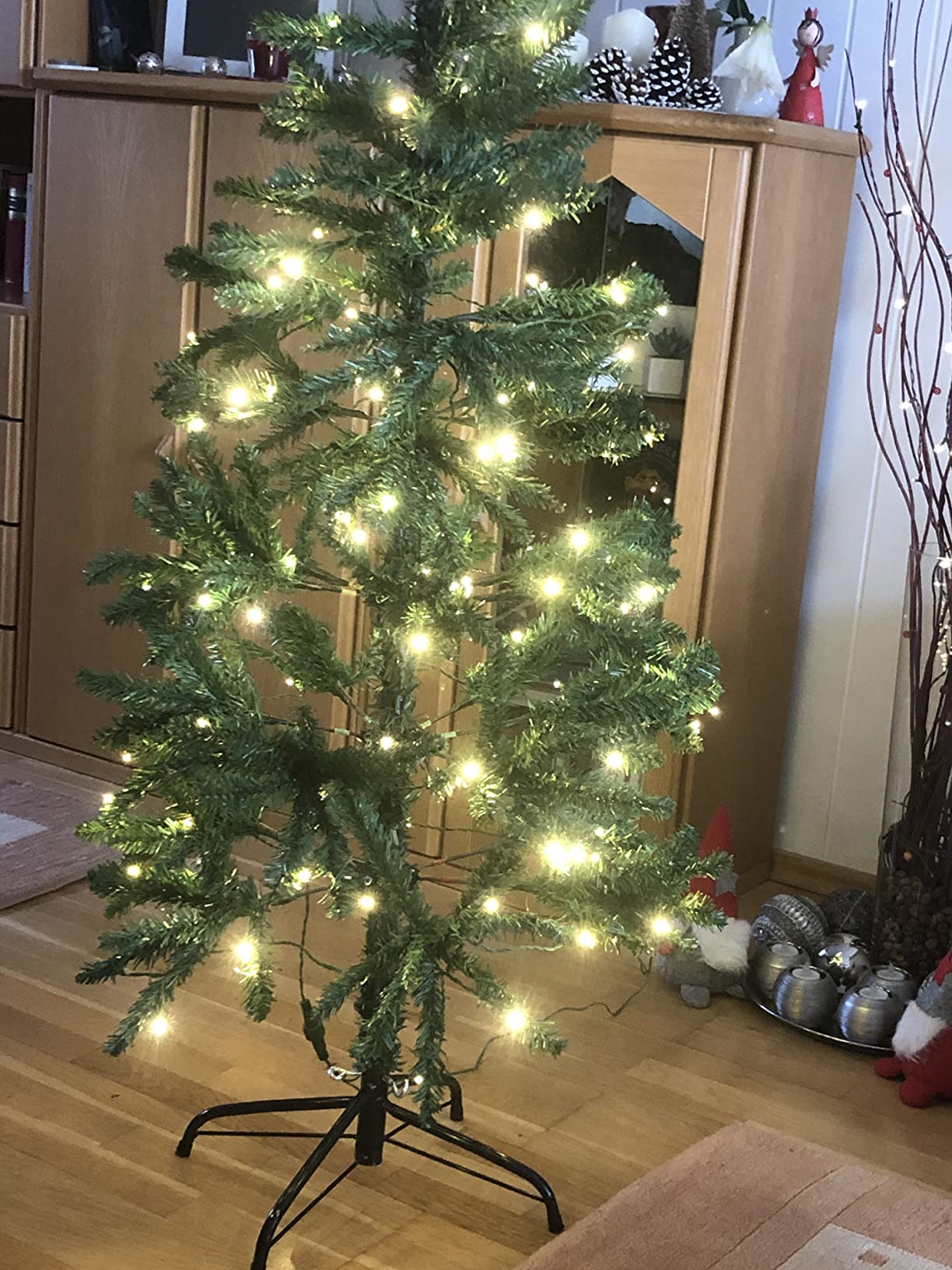 Nicht wie abgebildetKwaliteit40%Prijs60%Waarde80%Ist okay. Geschmückt kann man einiges kaschieren, aber so dicht wie auf den Abbildungen ist er nicht. Umso tiefer umso weniger grün ist vorhanden. Da kann man die Zweige biegen, wie man will. Die Beleuchtung ist in Ordnung, sowie auch Farbe u Material.