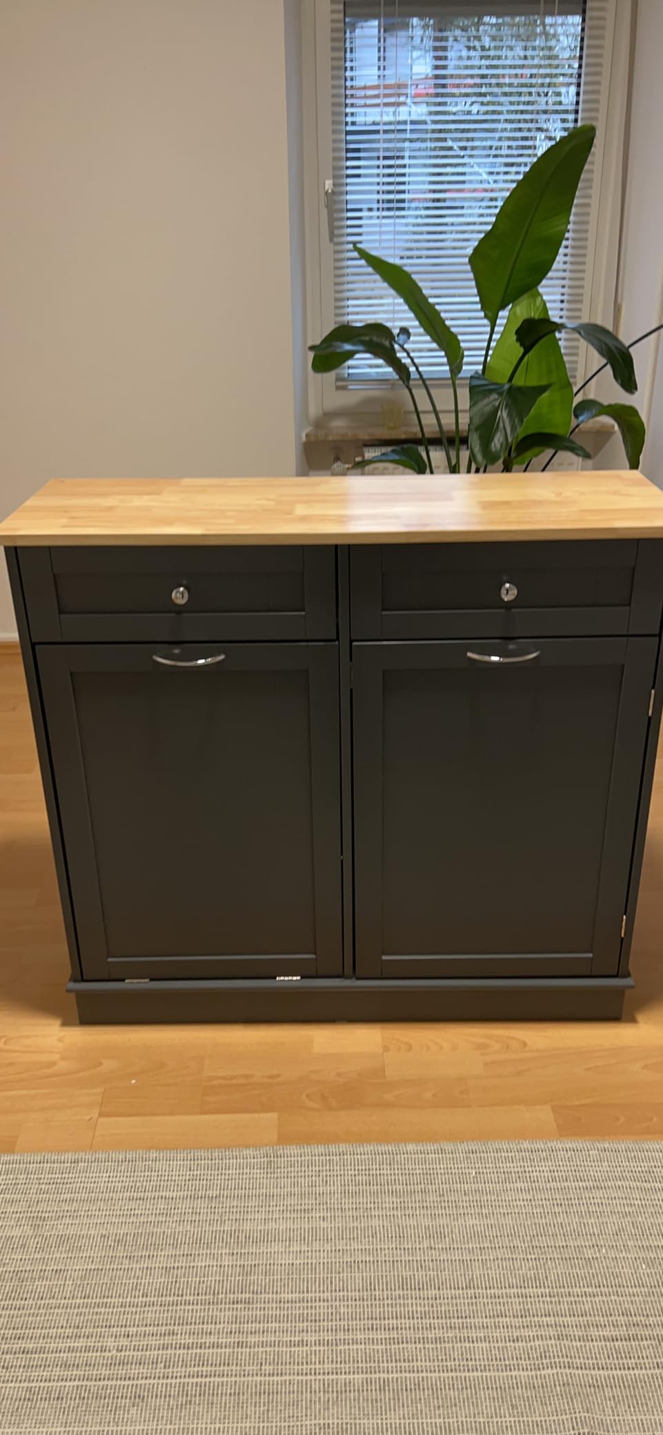 [Eenvoudige montage en gedetailleerde handleiding] (mogelijk niet beschikbaar in het Nederlands) geeft je een duidelijk idee van de installatie van de afvalkast. Elk onderdeel is duidelijk gelabeld om ervoor te zorgen dat je het bij de montage gemakkelijk kunt herkennen en onderscheiden. De afmetingen zijn 100 x 35 x 91 cm (l x b x h).