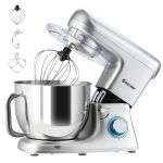 【6 snelheden en kantelbare kop】De professionele staande mixer biedt 6 instelbare snelheden en pulse functies, die kunnen voldoen aan de behoeften van de dagelijkse keuken om verschillende recepten te maken. Uitgerust met een kantelkop schakelaar, kunt u de kop eenvoudig op kantelen zetten om kommen en accessoires gemakkelijk te verwijderen.